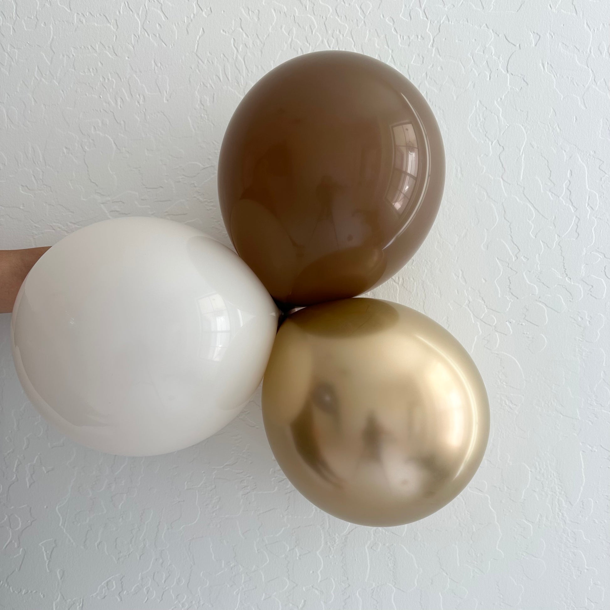 - Premium latex balloon colors: White Sand, Mirror Chrome Gold, Vintage Brown